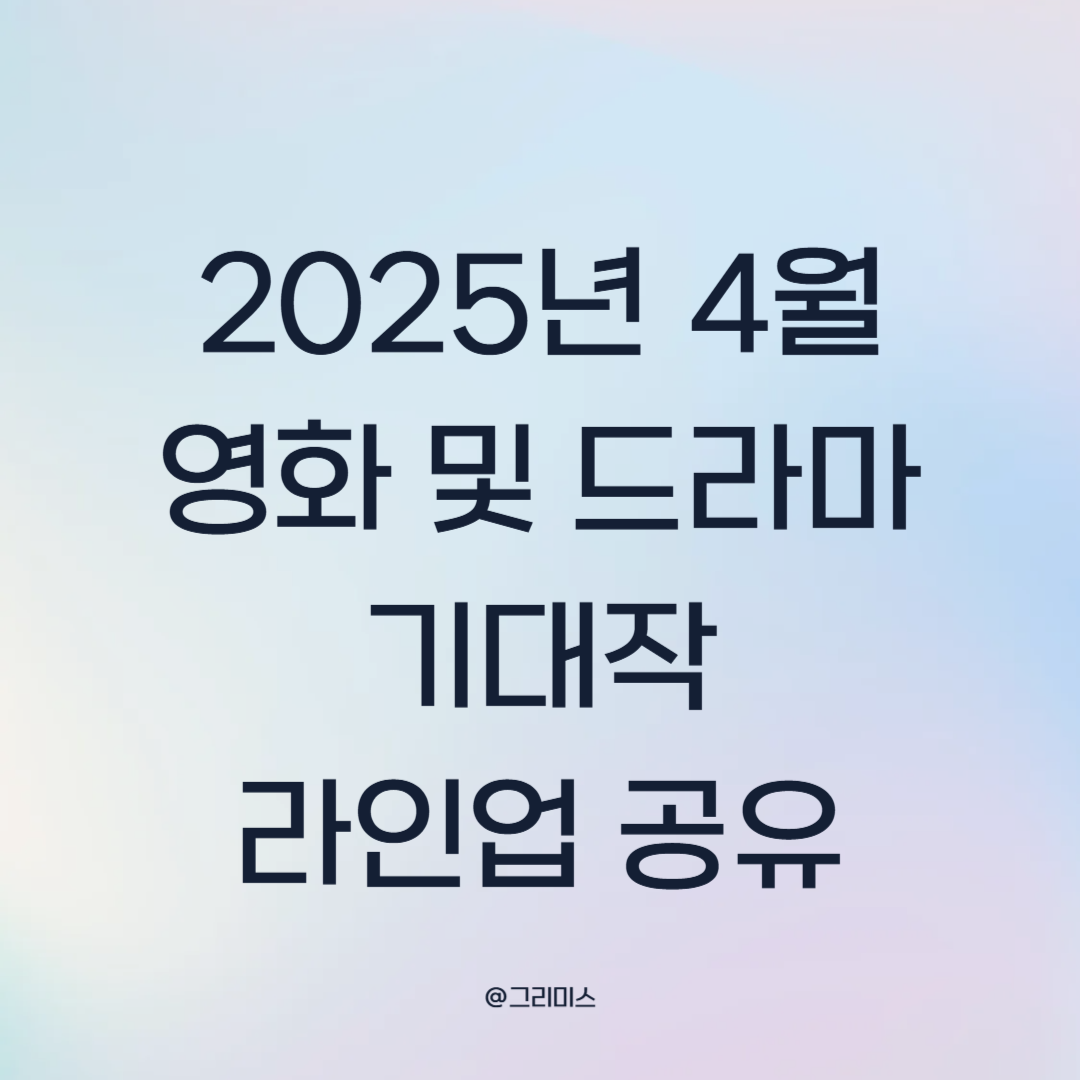 2025년 4월은 다양한 장르의 기대작들이 개봉 및 방영을 앞두고 있다. 영화와 드라마 팬이라면 미리 체크해 두고 기대감을 높여보는 것도 좋을 것이다. 각 작품의 공식 예고편과 추가 정보를 통해 더 자세한 내용을 확인해보자.