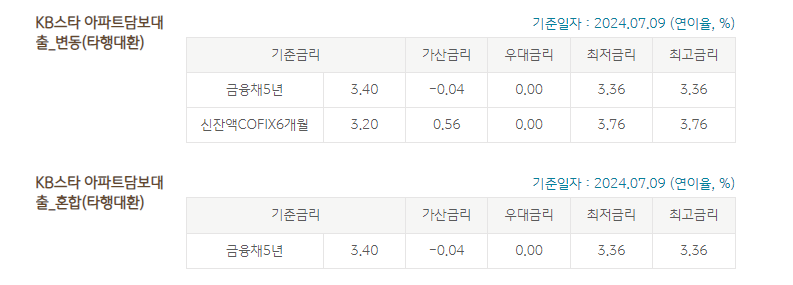 KB은행에서는 KB스타 아파트담보대출(타행대환) 대출 상품이 존재한다.