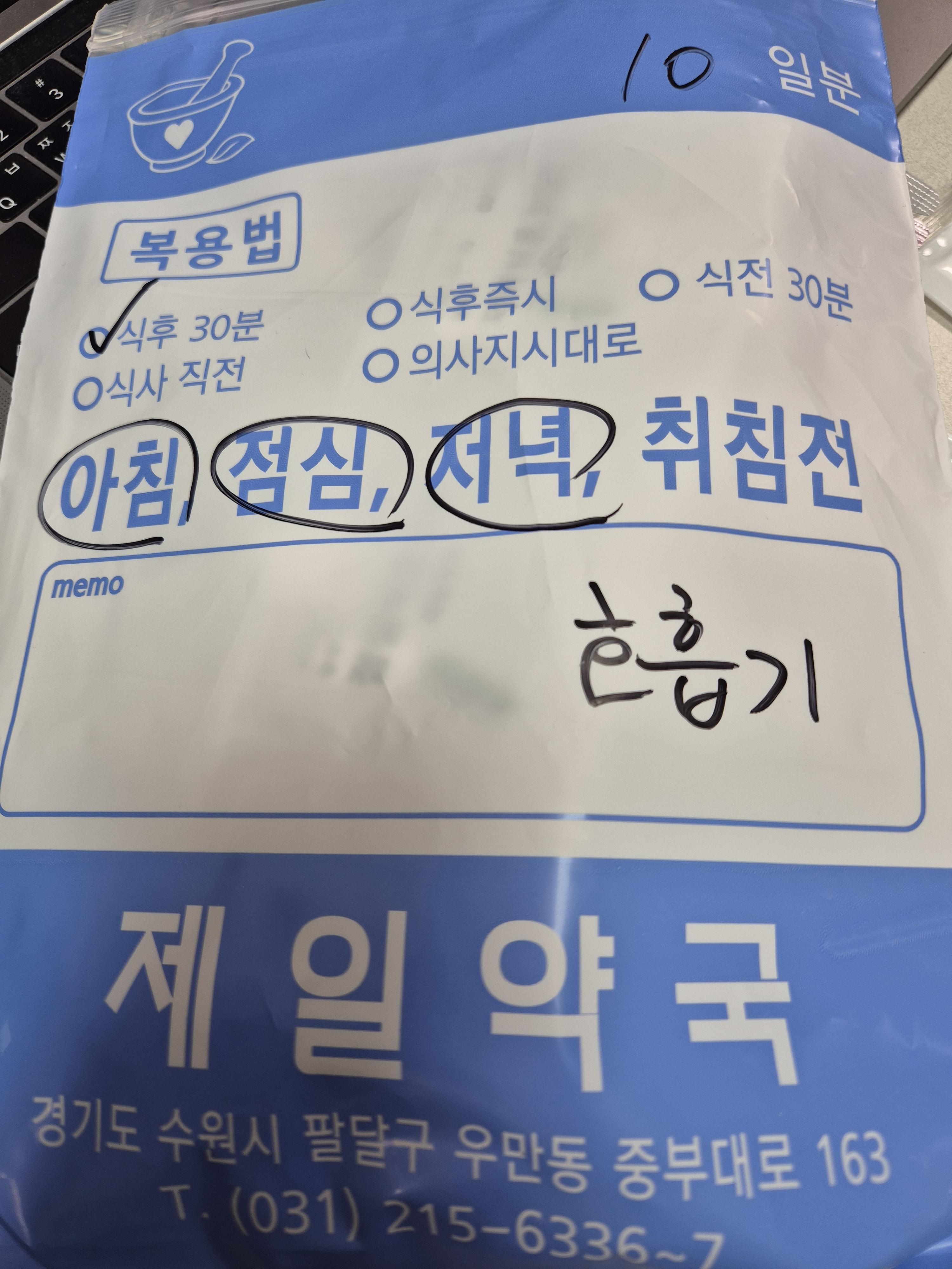 결과는 당일에 바로 들을 수 있었는데, 폐에 염증이 넓게 퍼져있지만 다행히도, 염증이 심한 정도가 아니라 약물치료로 나을 것 같다고 하셔서 약을 10일 치나 받아왔다.