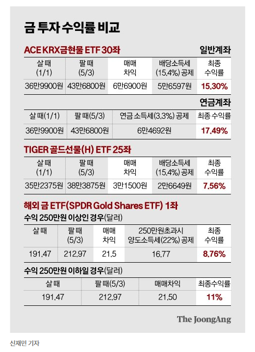 실물 금은 초기 비용이 높지만 세금이 없고, 금 통장은 소액 거래가 가능하지만 세금이 부과된다.